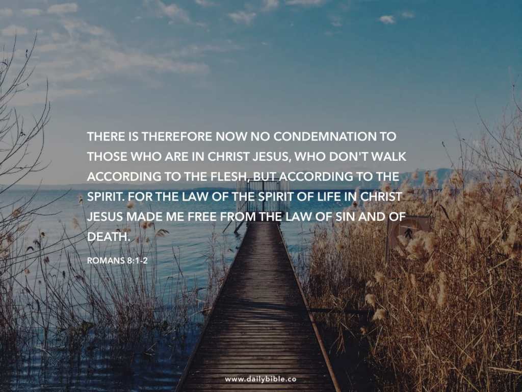 8 There is therefore now no condemnation for those who are in Christ Jesus.[a] 2 For the law of the Spirit of life has set you[b] free in Christ Jesus from the law of sin and death. 3 For God has done what the law, weakened by the flesh, could not do. By sending his own Son in the likeness of sinful flesh and for sin,[c] he condemned sin in the flesh, 4 in order that the righteous requirement of the law might be fulfilled in us, who walk not according to the flesh but according to the Spirit. 5 For those who live according to the flesh set their minds on the things of the flesh, but those who live according to the Spirit set their minds on the things of the Spirit. 6 For to set the mind on the flesh is death, but to set the mind on the Spirit is life and peace. 7 For the mind that is set on the flesh is hostile to God, for it does not submit to God’s law; indeed, it cannot. 8 Those who are in the flesh cannot please God.