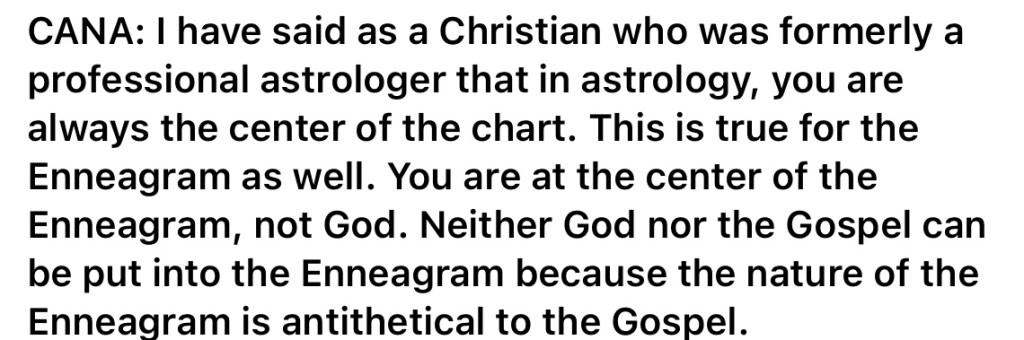 The Enneagram was a tool hence utilzied as a way to discover one’s “True Self” that was masked by sin (their belief). Richard Rohr is someone who promotes this viewpoint. His book, “The Enneagram: A Christian Perspective” ushered an increased usage of this occult tool in the Emergent, now Progressive Christian Church (not Christian), and is now in Evangelical Churches. Per Marcia Montenegro, a former Astrologer (now Christian), there are now churches advocating that the Enneagram will help you know your “Divine Personality” and show you the “face of God.” Oh my...🚩