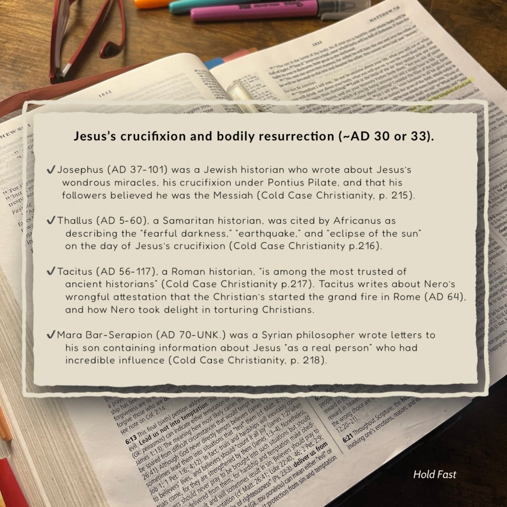 “Even if you silenced the voices of the New Testament authors, you would still have a robust description of Jesus and his followers from ancient, hostile non-Christian voices in the fallout…There are more non-Christian voices in this extrabiblical collection (ninety-two historical figures) than Christian ones (figure-one), and regardless of their social stature, ethnicity, motivational, or region, the common description of Jesus (at their core) remain the same.” (p. 110)