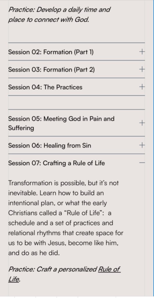 As I checked-out Comer’s webpage further, another concern jumped forward… Under his Practicing the Way “free resources” a statement under “Crafting a Rule of Life” which is a fitting works-based thesis for the entire resource: