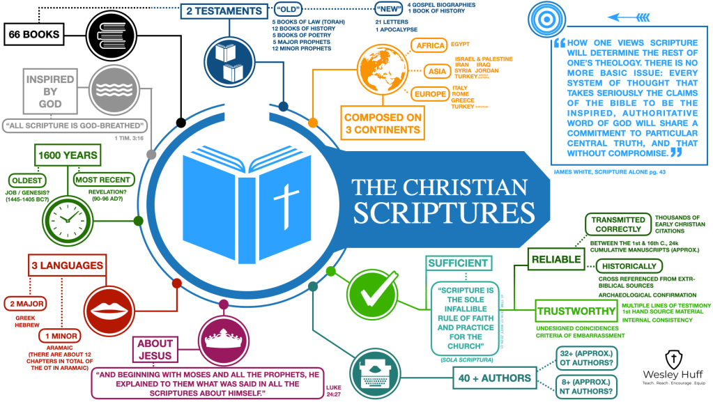 The Bible is a codex of 66 books penned by more than 40 writers on 3 different continents (Africa, Europe, and Asia), in 3 different languages (Hebrew, Aramaic, and Greek), with a steadfast message testifying to God as the One True God who is faithful to save. Per John Wenham, from his book Christ and the Bible, “To him (Jesus), what Scripture says, God says” (p. 17).